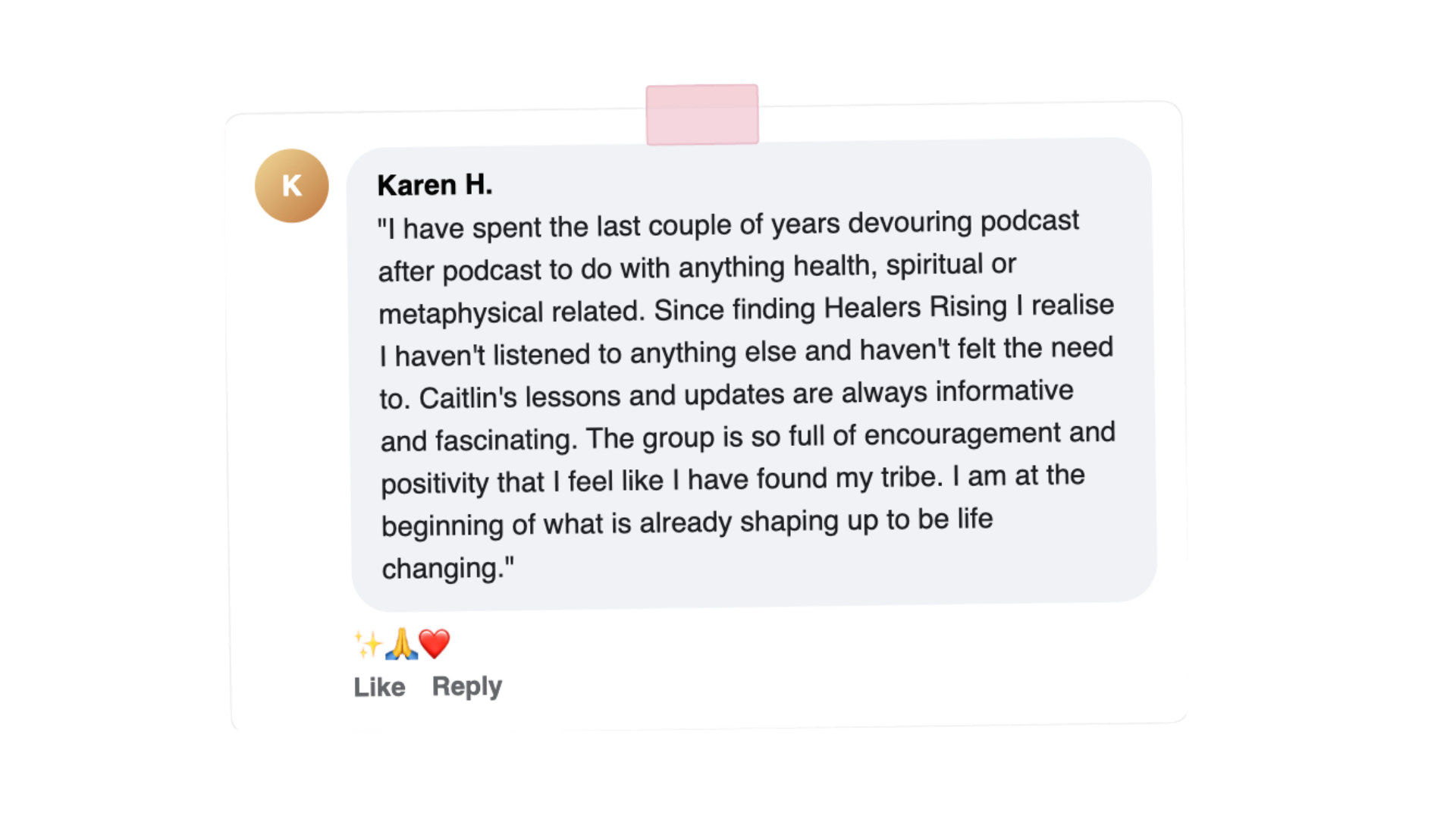 The Healers Rising Academy is truly unlike any group I've ever been a part of. Caitlin doesn't fail to deliver an ever-expanding library of life changing, incredibly helpful, relevant and applicable tools for navigating your journey."